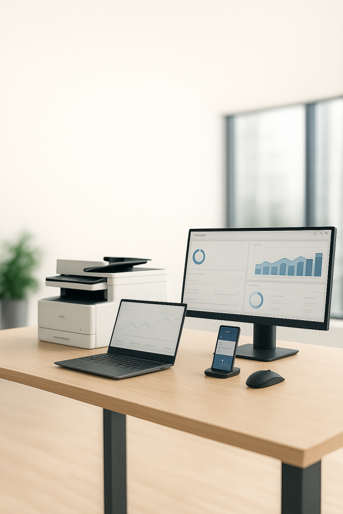 Unser Workplace-Portfolio umfasst sämtliche IT-Lösungen, die Ihre Mitarbeiter täglich benötigen – von leistungsstarken Laptops und Smartphones bis hin zu Druckern und Peripheriegeräten. Wir stellen sicher, dass Ihre Teams optimal ausgestattet sind, um effizient und produktiv zu arbeiten. Mit benutzerfreundlicher Technologie und maßgeschneiderten Lösungen schaffen wir eine reibungslose Arbeitsumgebung, die den Anforderungen Ihres Unternehmens gerecht wird. Vertrauen Sie auf eine IT-Ausstattung, die sich nahtlos in Ihren Arbeitsalltag integriert und Ihre Produktivität steigert.